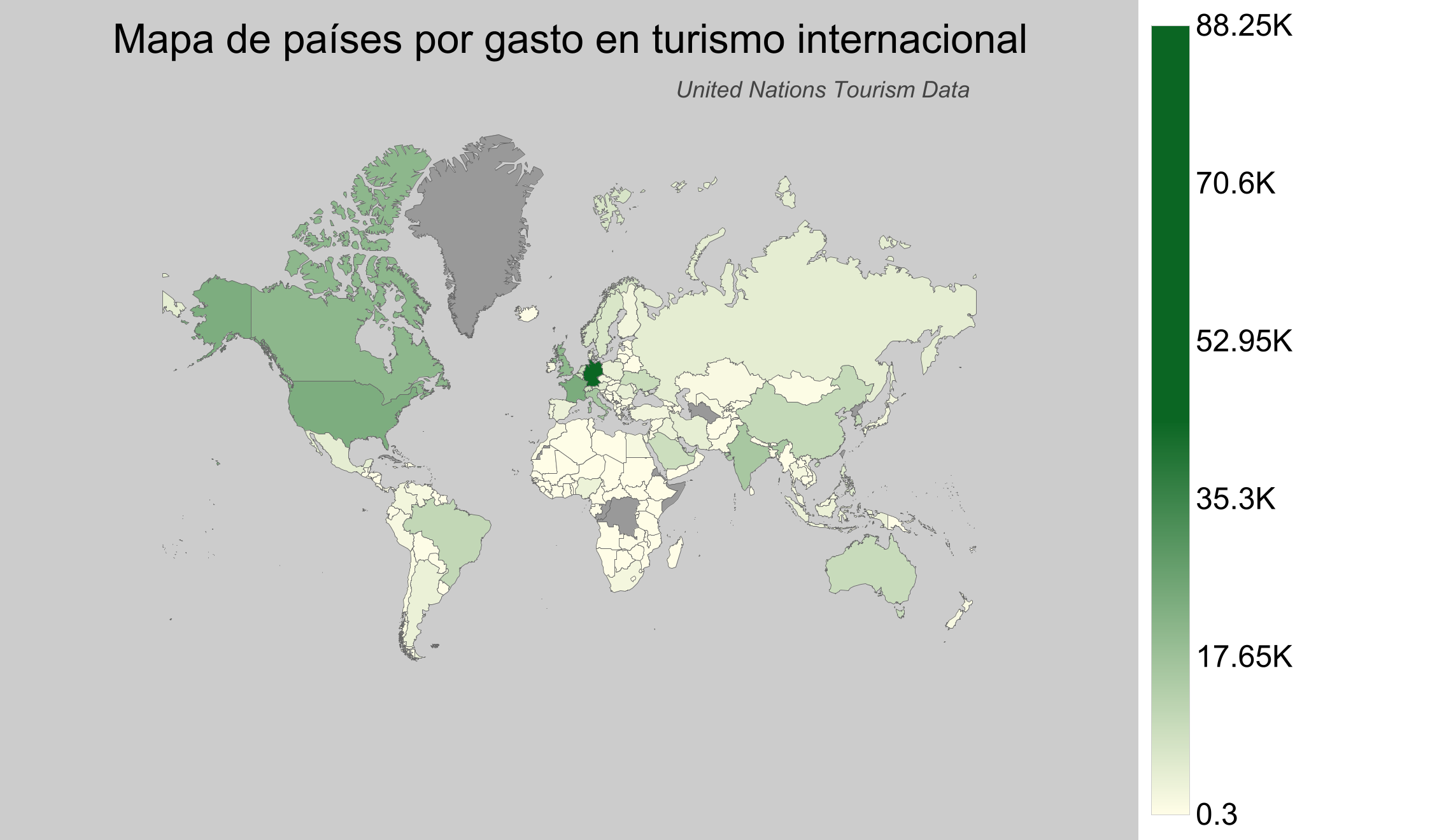 El gasto internacional en turismo refleja cuánto los turistas invierten al viajar fuera de sus respectivos países, destacando no solo el poder adquisitivo sino también las preferencias de destino a nivel global. Este índice es crucial para comprender el impacto económico del turismo en los mercados internacionales. Note que este reporte se centra en el gasto relativo a viajes al extranjero y no incluye el turismo doméstico. Los datos presentados corresponden al año 2023, la última información disponible según la base de datos turística de las Naciones Unidas al año 2025.