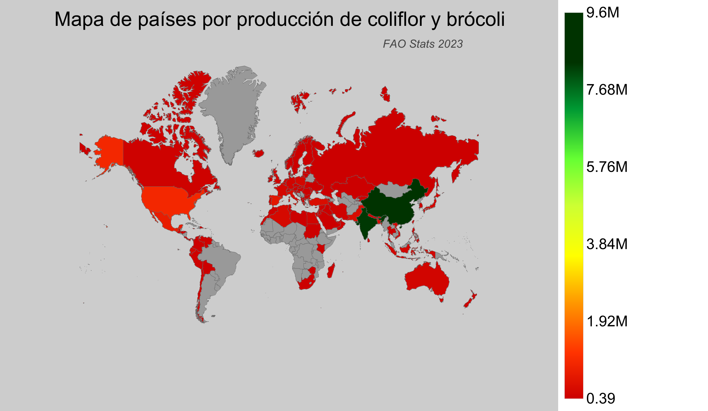 Países por producción de coliflor y brócoli