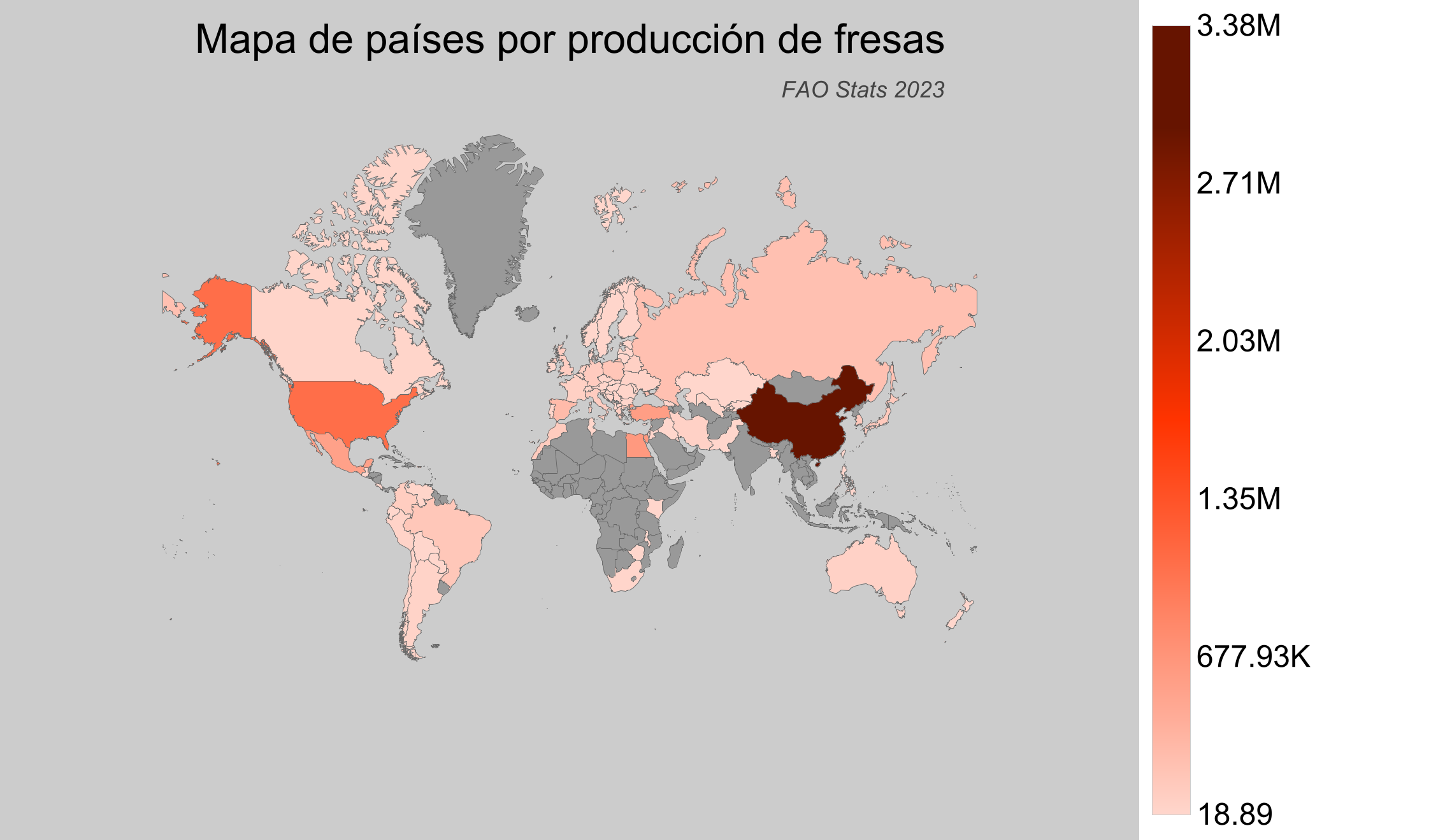 - Estados Unidos representa el 11.9% del total de fresas producidas globalmente.