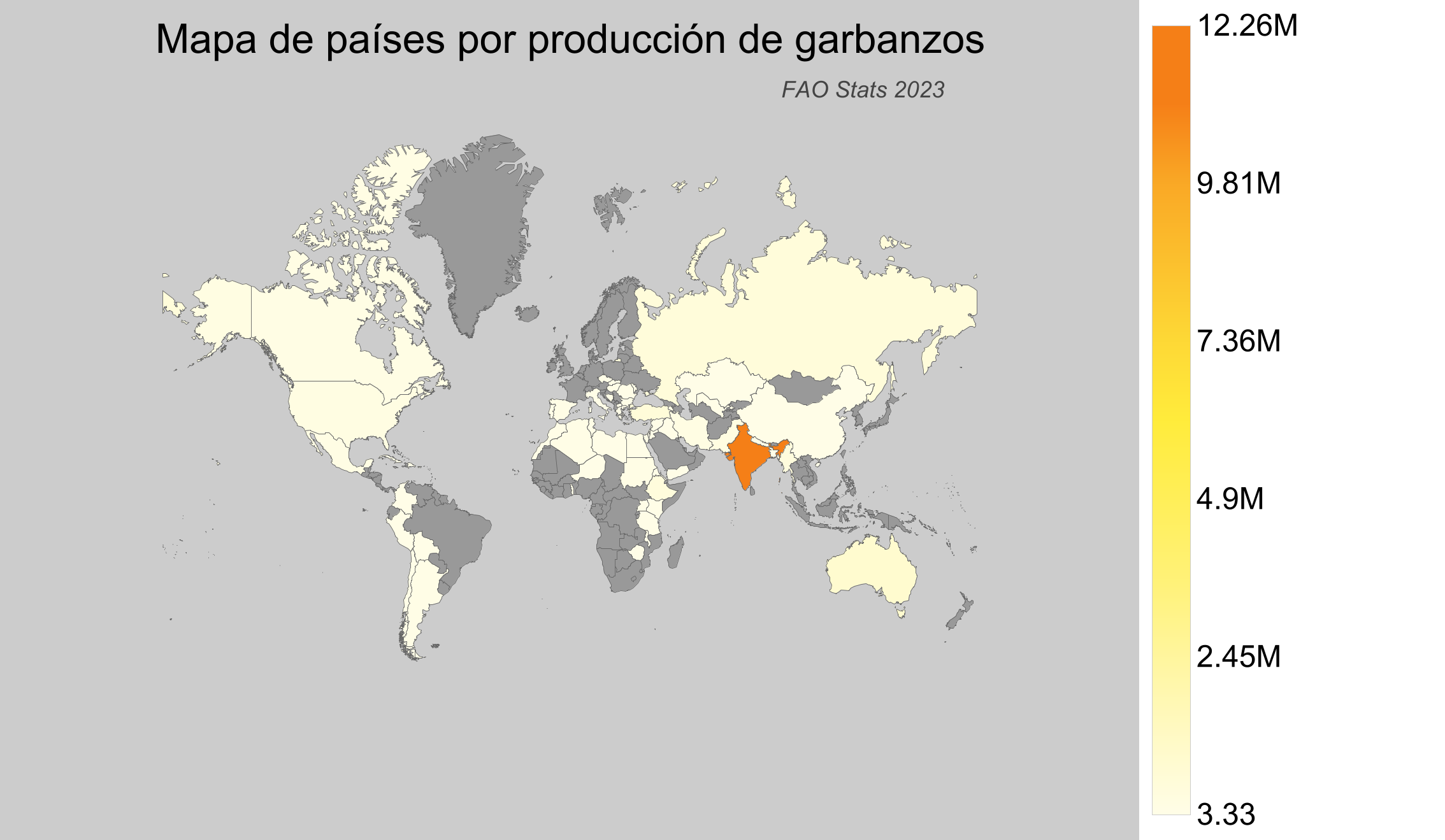 - India es el líder mundial indiscutible en la producción de garbanzos con alrededor de 12.3 millones de toneladas.