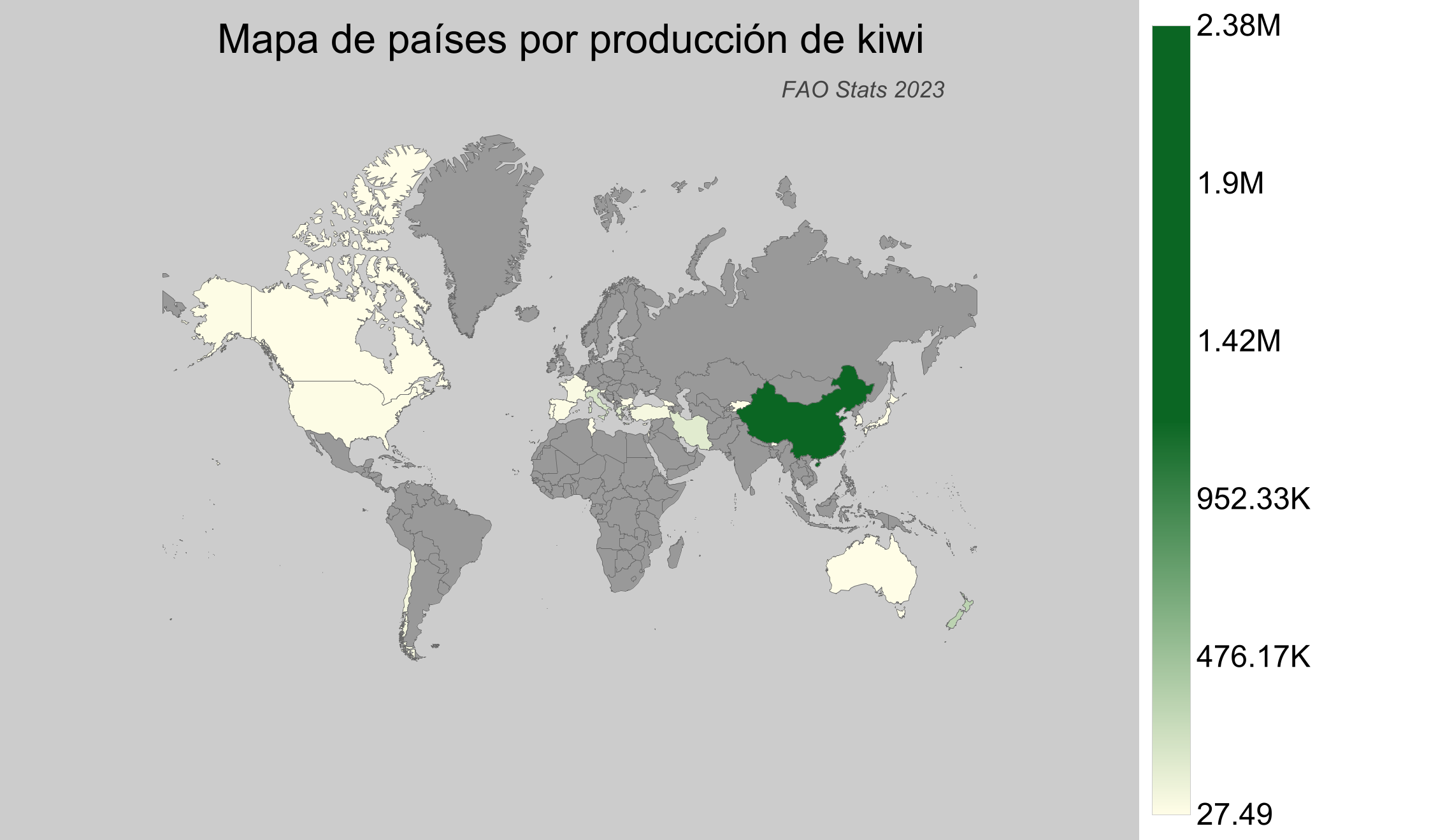- México: Según las estadísticas de la FAO, México no se encuentra listado como productor de kiwi.