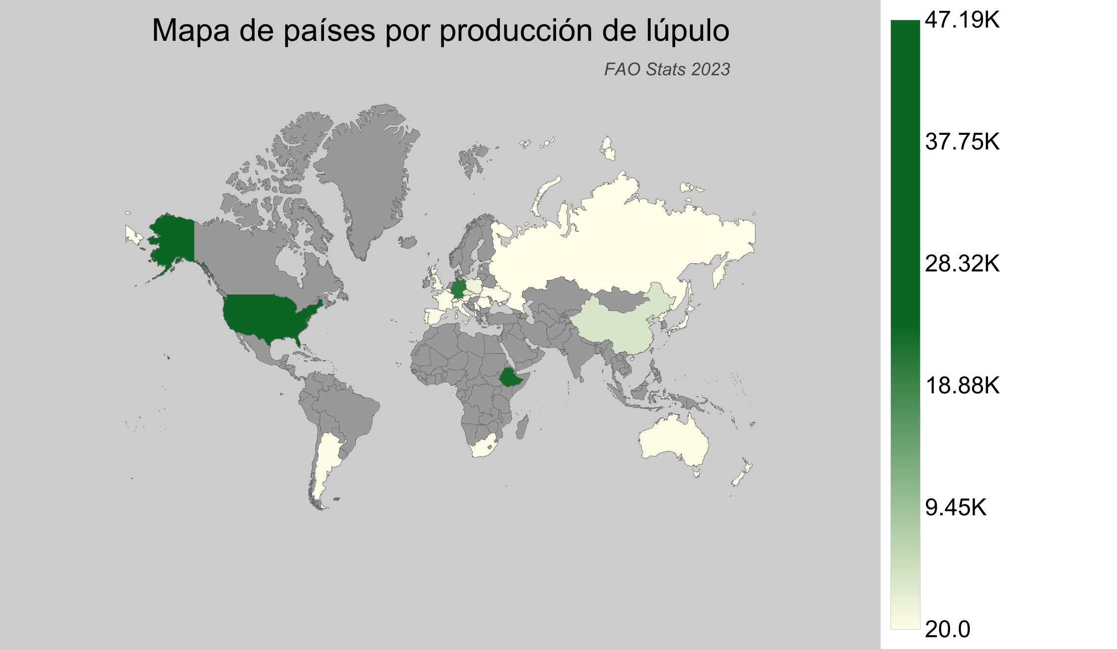 - México: según datos de la FAO, México no está listado como productor de lúpulo, lo que sugiere que no tiene una producción significativa para el año 2023.