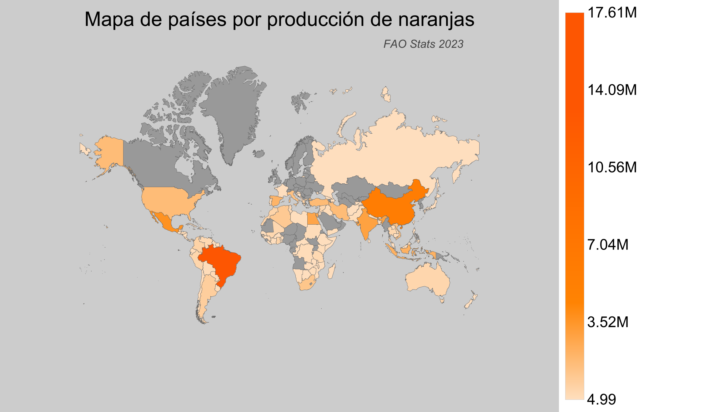 - Brasil es el mayor productor de naranjas, con una producción de aproximadamente 17.6 millones de toneladas.