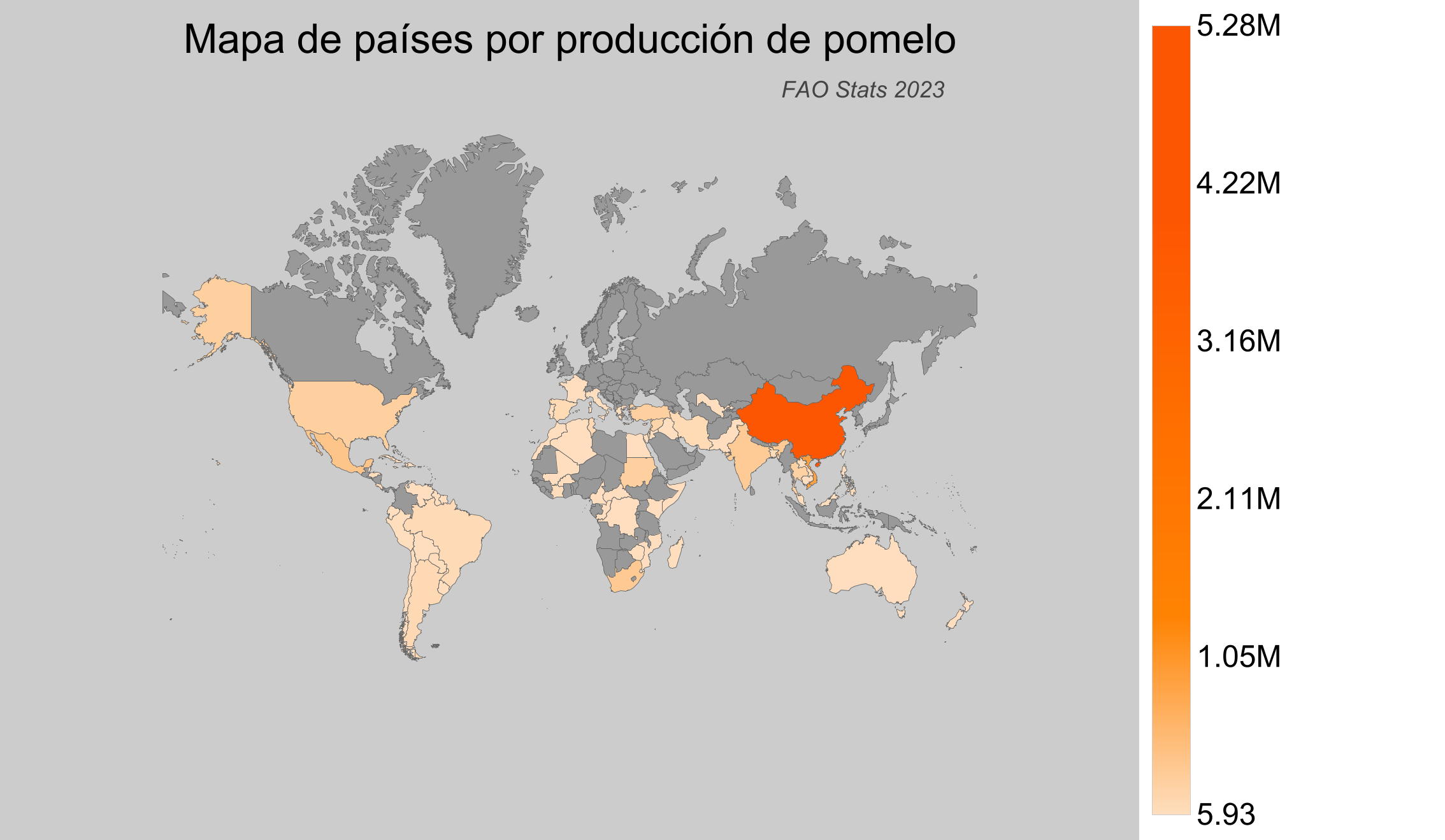 - China: La mayor productora de pomelo con alrededor de 5.28 millones de toneladas anuales.