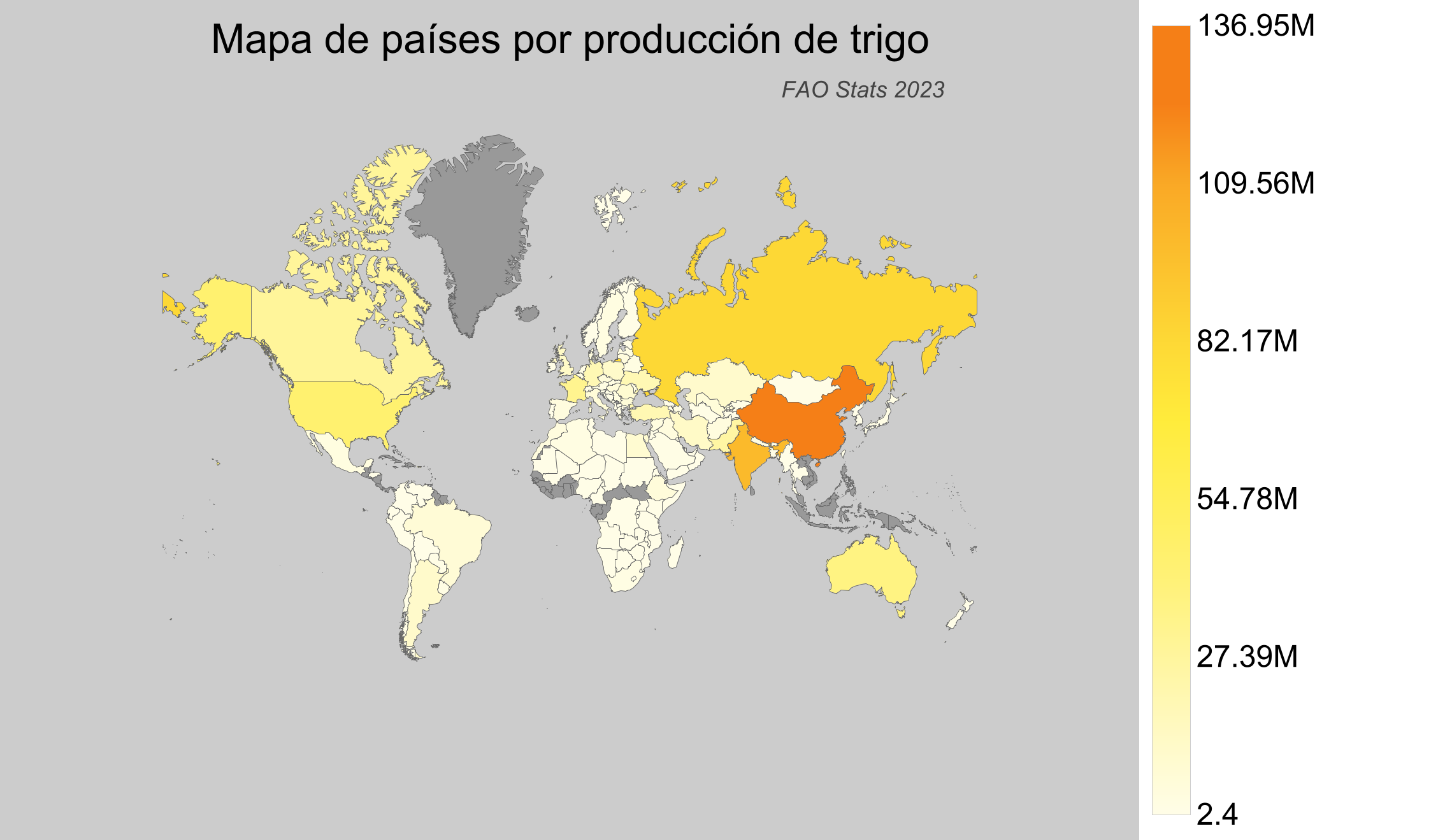 - China lidera la producción mundial de trigo con aproximadamente 137 millones de toneladas en 2023.